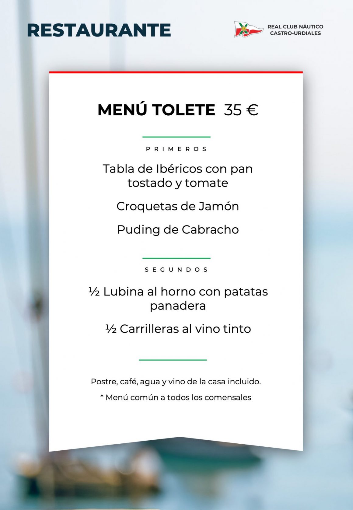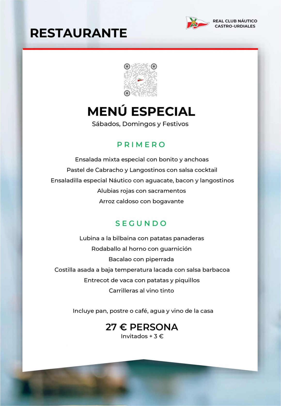 El menú especial disponible